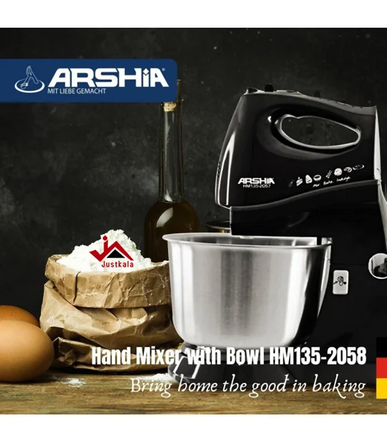 میکسر دستی ARSHIA با کاسه ای که به عنوان یک وسیله خارق العاده برای استفاده روزمره به شما کمک می کند. دستور العمل های مورد علاقه خود را امتحان کنید. این میکسر دستی با داشتن یک موتور ۳۰۰ واتی و پنج تنظیم سرعت می تواند سخت ترین کارها را با توان مناسب انتخاب شما انجام دهد. میکسر دستی را روی پایه قرار دهید تا دست شما آزاد باشد یا برای کنترل دستی بیشتر از میکسر دستی بدون پایه استفاده کنید. همزن برقی کاسه دار عرشیا دارای کاسه ای از جنس استنلس استیل با ظرفیت ۲ لیتر برای مایع و ظرفیت ۱ کیلوگرم برای غذای خشک است. با این میکسر آشپزی خود را یک لذت خلاقانه بی دردسر کنید.