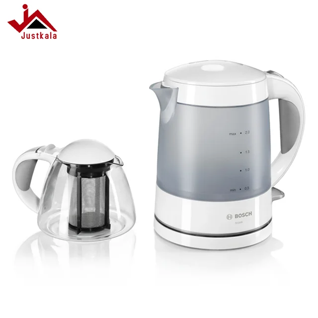 جنس کتری چای ساز بوش TTA2201 پلاستیک مقاوم و فاقد BPA است که موجب شده است این مدل کتری وزن بسیار کمی داشته باشد و استفاده از آن برای شما راحت باشد. قوری چای ساز از جنس پیرکس مقاوم در برابر حرارت است که داخل قوری صافی فلزیای قرار دارد که مانع از ورود برگ چای به داخل لیوان میشود. دستگیره چای ساز بوش جنس پلاستیکی مرغوبی دارد و با سطح اتکای مناسبی که با دست ایجاد میکند خطر لغزیدن کتری را به حداقل میرساند. توان مصرفی چای ساز بوش TTA2201 با قدرت 1785 وات است که آب را خیلی سریع به جوش میآورد.