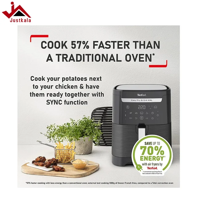 سرخکن EY801D تفال یک دستگاه با دو قابلیت بزرگ است. سرخ کن بعلاوه گریل، در یک دستگاه دیجیتال دیده شده است.