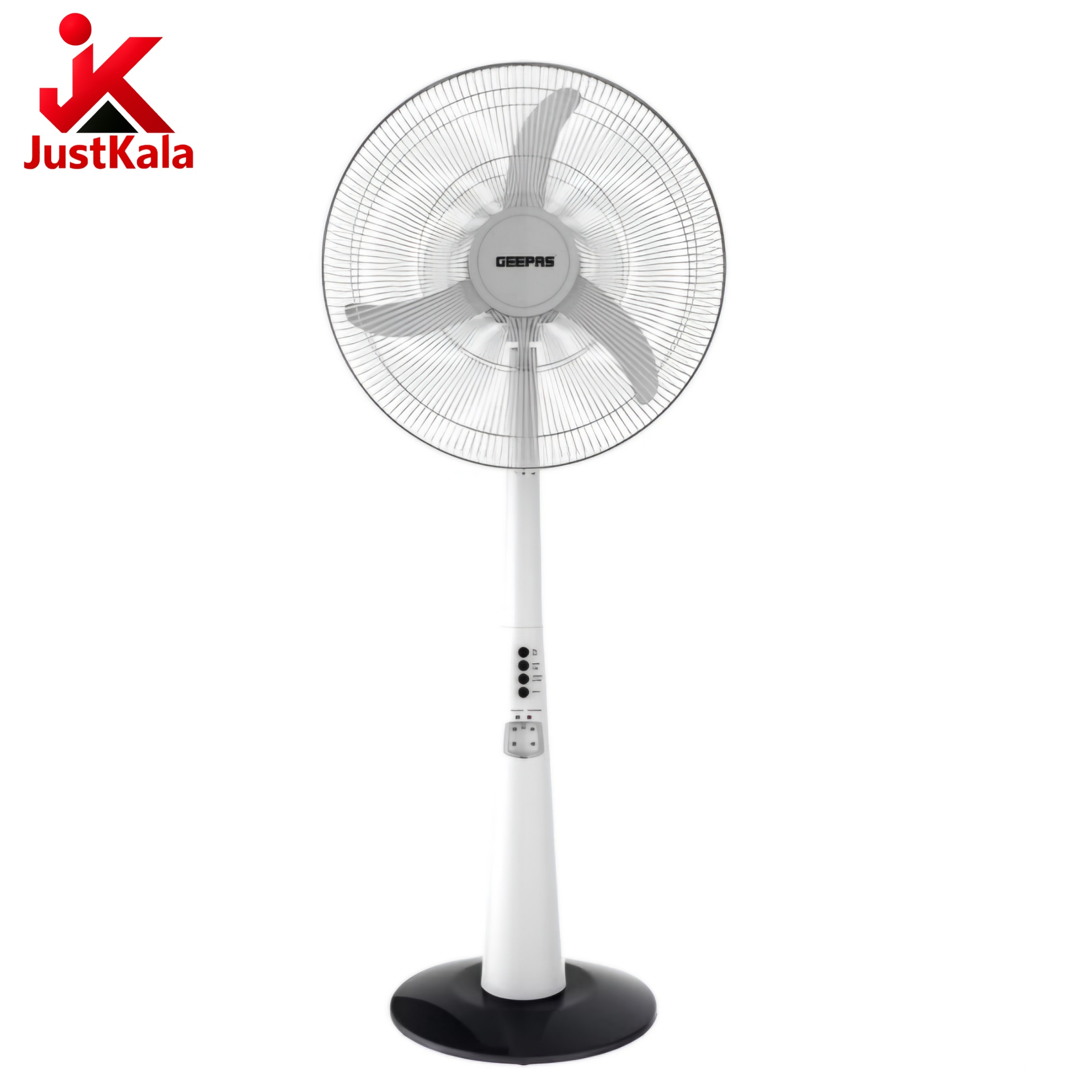 پنکه قابل شارژ(Geepas) 18 اینچی یک راه حل ایده آل برای خنک نگه داشتن شما در تمام طول روز است. این پنکه دارای چراغ های LED پرنور است که می تواند به مدت 70 ساعت کار کند. همچنین برای سفرهای کمپینگ و فعالیت های ورزشی در فضای باز عالی است. این پنکه در حالت سرعت بالا 3.5 ساعت و در حالت سرعت پایین 5 ساعت کار می کند. این پنکه هم از برق AC و هم از برق DC استفاده می کند. این پنکه دارای قابلیت چرخش چند زاویه ای در 2 جهت است تا از تأمین یکنواخت هوای خنک در سراسر اتاق اطمینان حاصل شود. این پنکه مجهز به چراغ های نشانگر قرمز و سبز است.