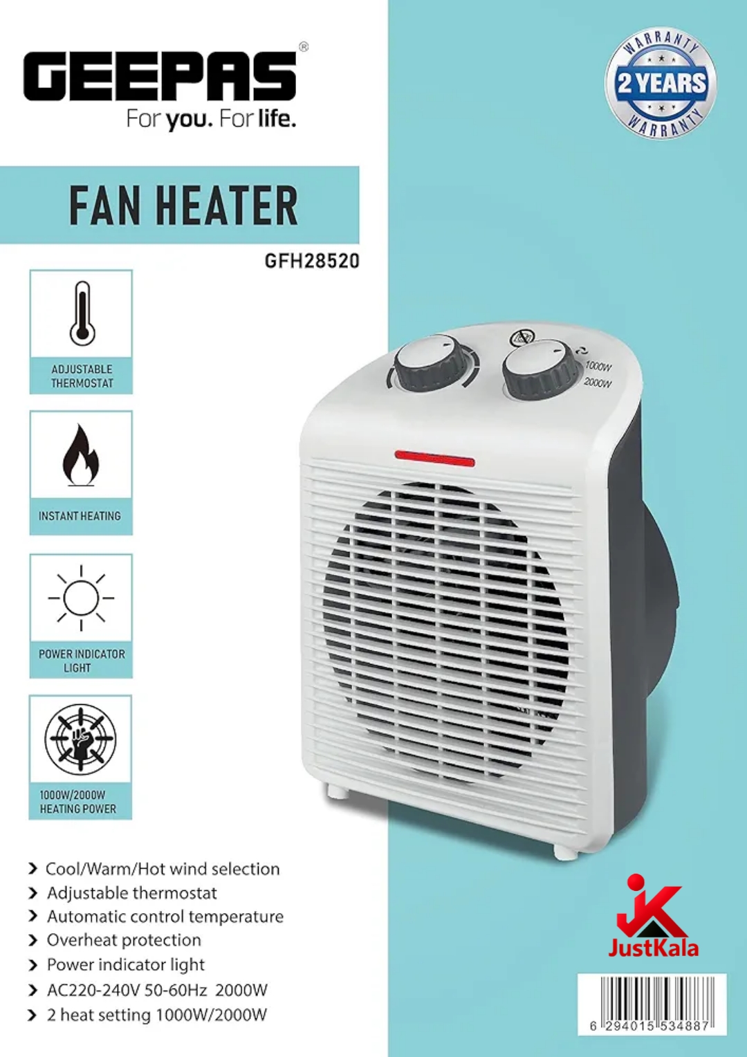 بخاری جیپاس مدل GFH28520 یک فن هیتر رومیزی با توان گرمایشی 1000 و 2000 وات، طراحی جمعوجور، و قابلیت استفاده در حالت خنک، ولرم و گرم است که برای فضاهای کوچک تا متوسط گزینهای اقتصادی و چندمنظوره محسوب میشود.