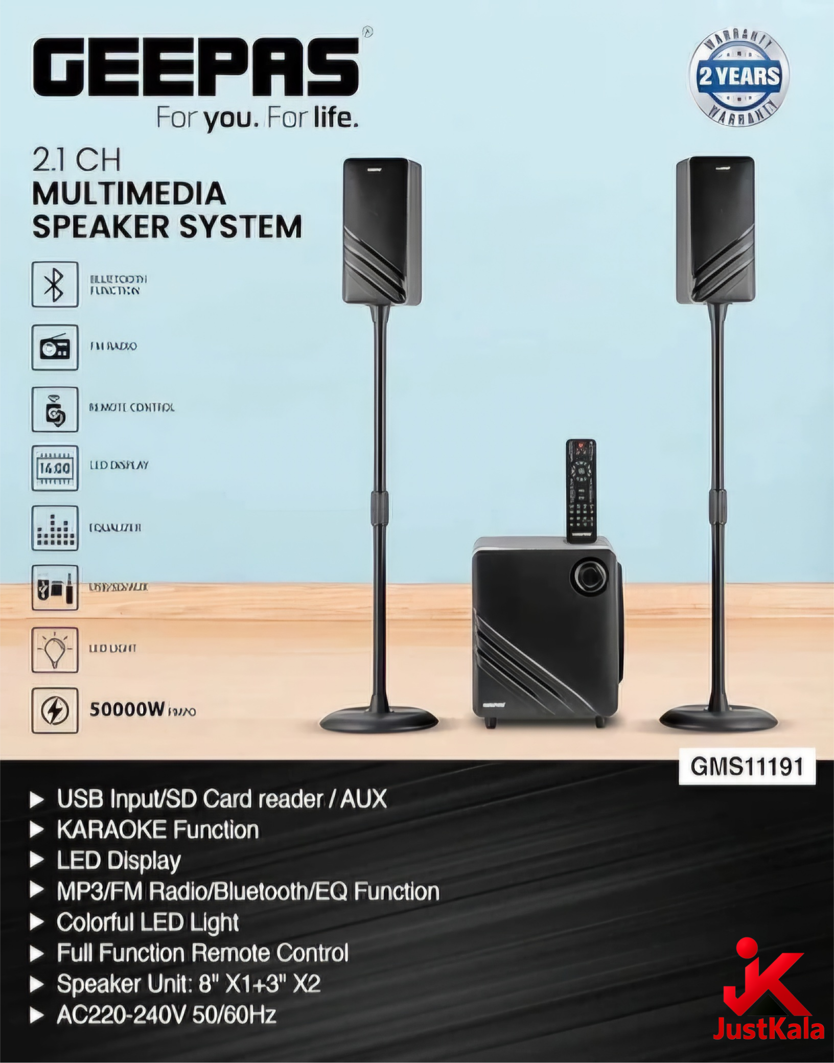 اسپیکر بلوتوثی جیپاس مدل GMS11191 یکی از مدلهای چندرسانهای قدرتمند این برند است که برای استفاده خانگی، مهمانیها و فضاهای نیمهحرفهای طراحی شده. اطلاعات رسمی این مدل از وبسایت Geepas به شرح زیر است: