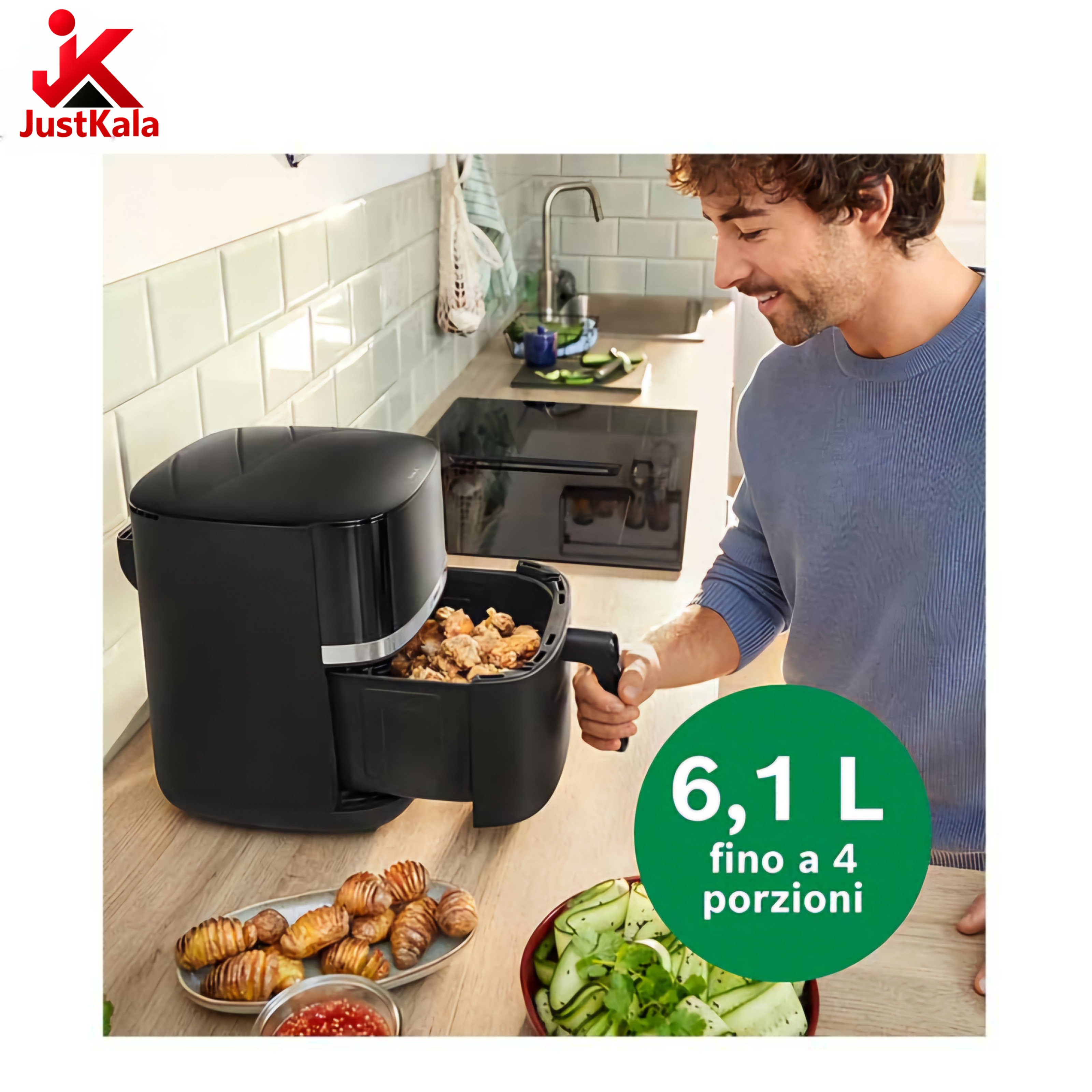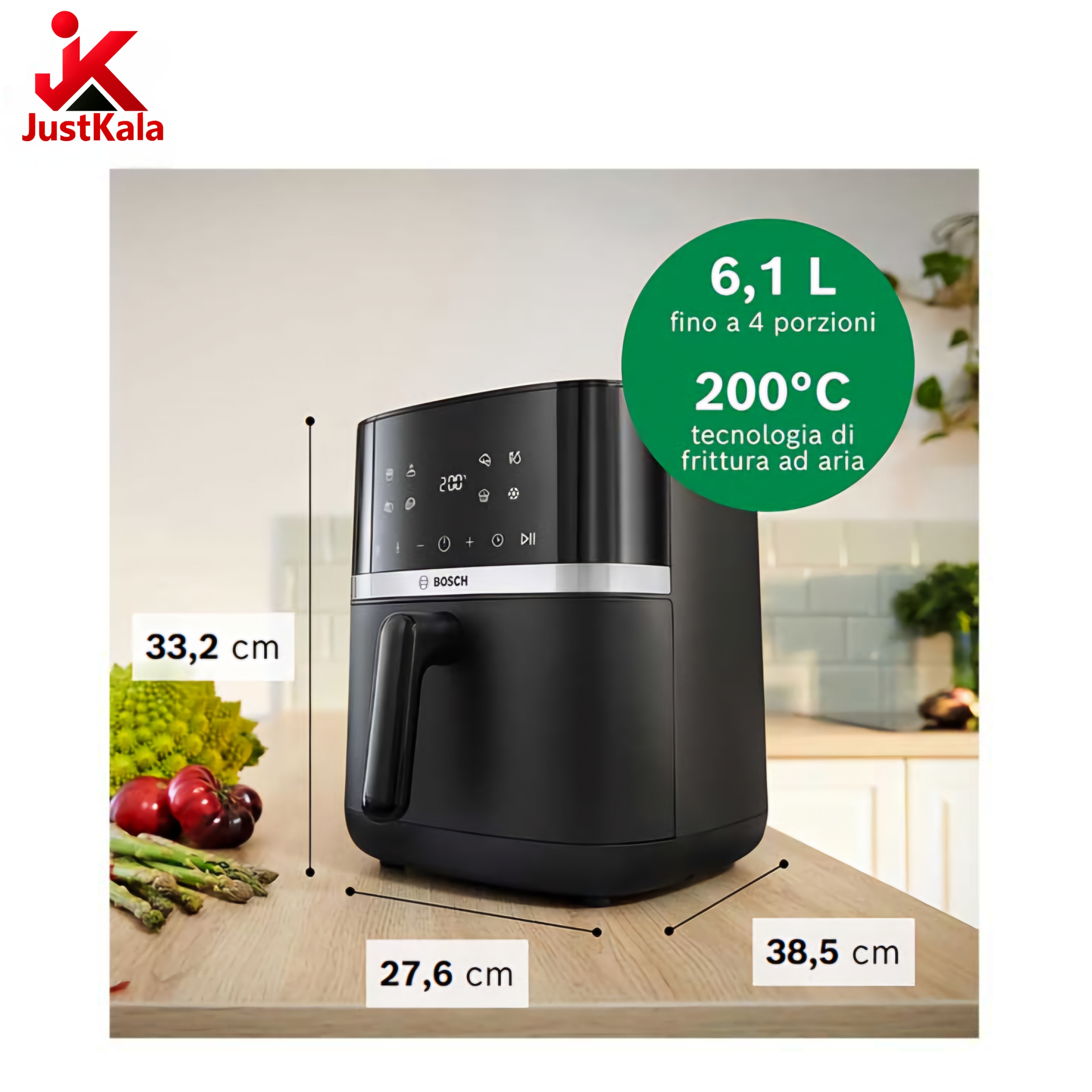 سرخکن بدون روغن بوش مدل MAF462B0 دارای ظرفیت ۶.۱ لیتر است و به دو المنت گرمایشی در بالا و پایین مجهز شده تا حرارت به صورت یکنواخت پخش شود. نتیجه این طراحی، پخت یکدست و بافت عالی غذاست؛ از یک پیتزای خوشمزه گرفته تا مرغ شکمپر با رویه طلایی و جذاب.