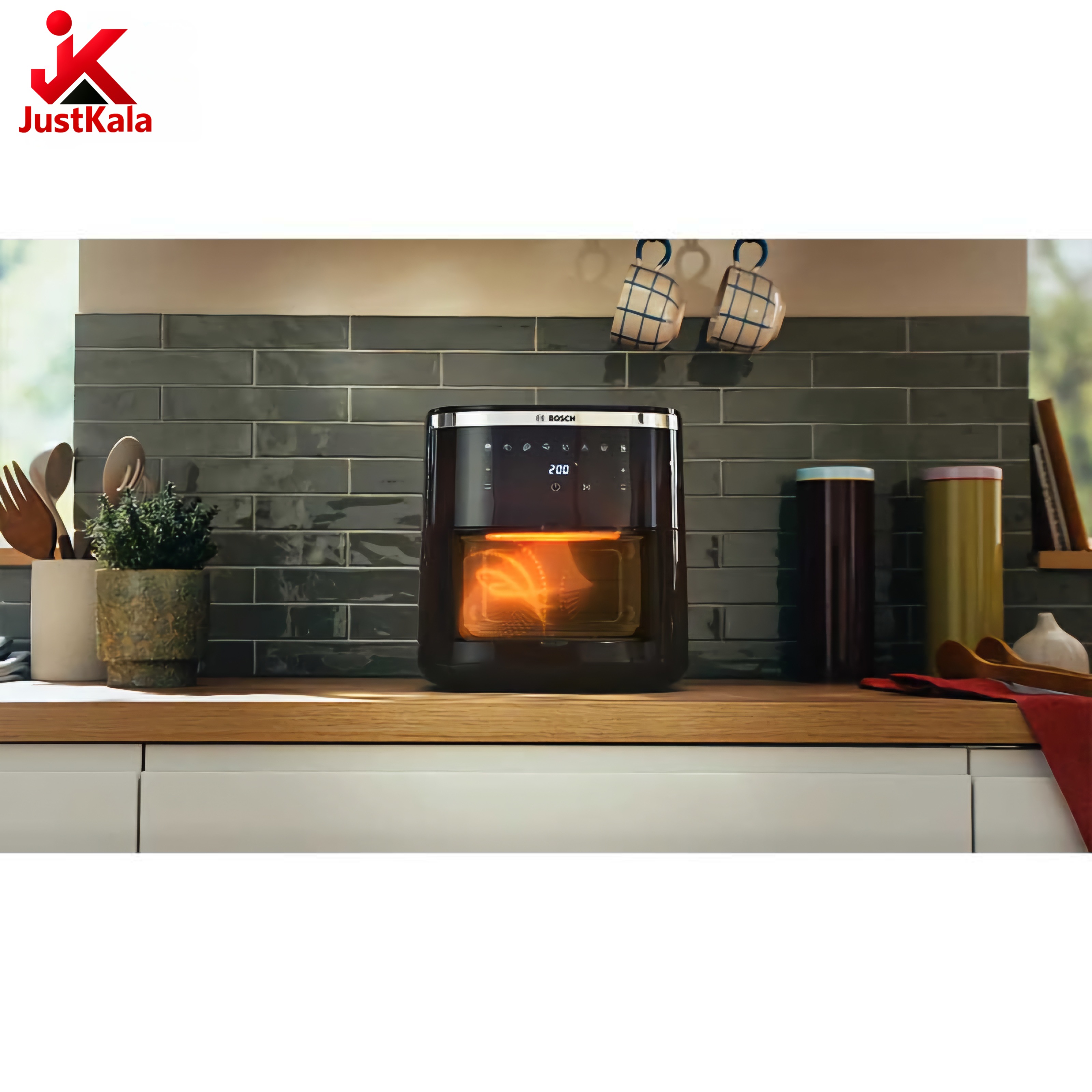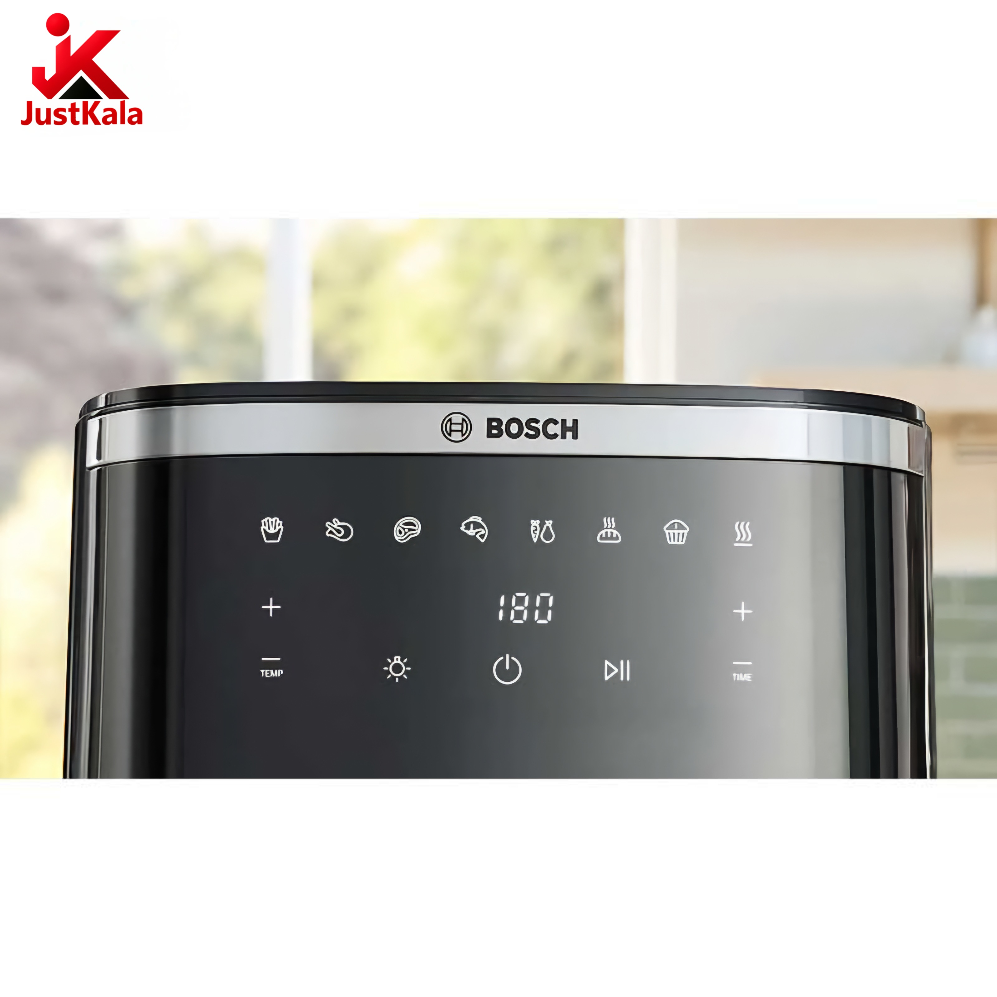 سرخکن بوش مدل MAF671B0 با رنگ مشکی و طراحی مدرن، جلوهای شیک به آشپزخانه شما میبخشد. در قسمت جلویی دستگاه، یک نمایشگر دیجیتال با دکمههای لمسی تعبیه شده که کار با دستگاه را بسیار ساده و لذتبخش میکند.