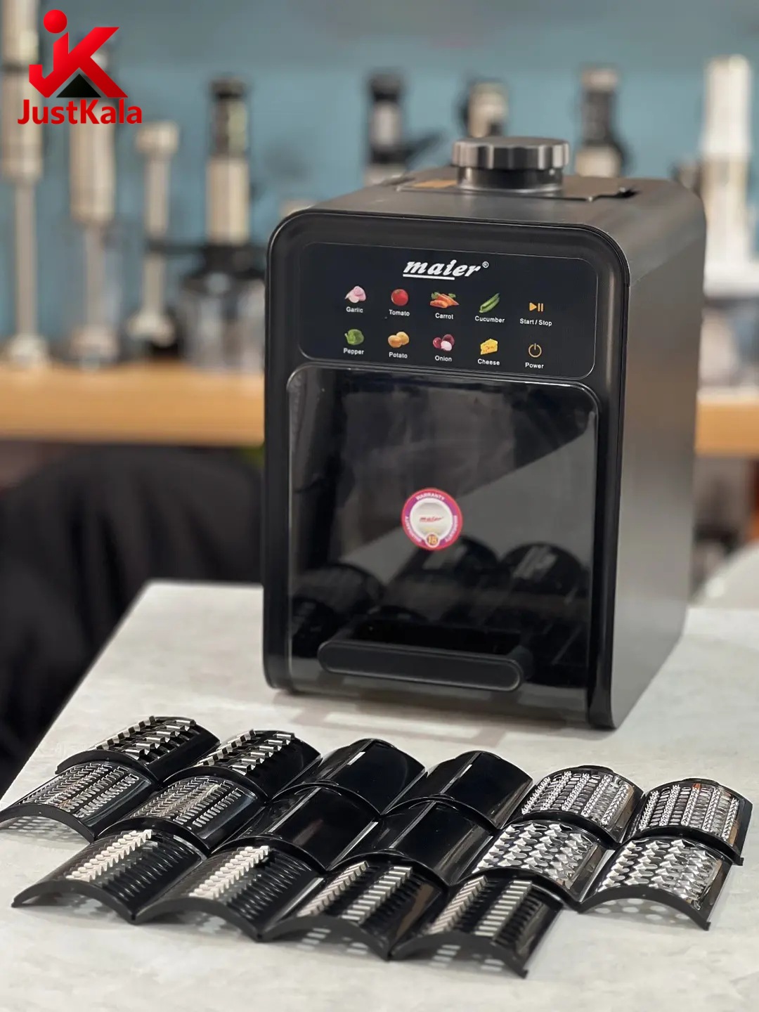 - تعداد تیغهها: 9 تیغه استیل ضدزنگ با عملکردهای مختلف (خرد کردن، رنده کردن، ورقهکردن، خلالکردن)