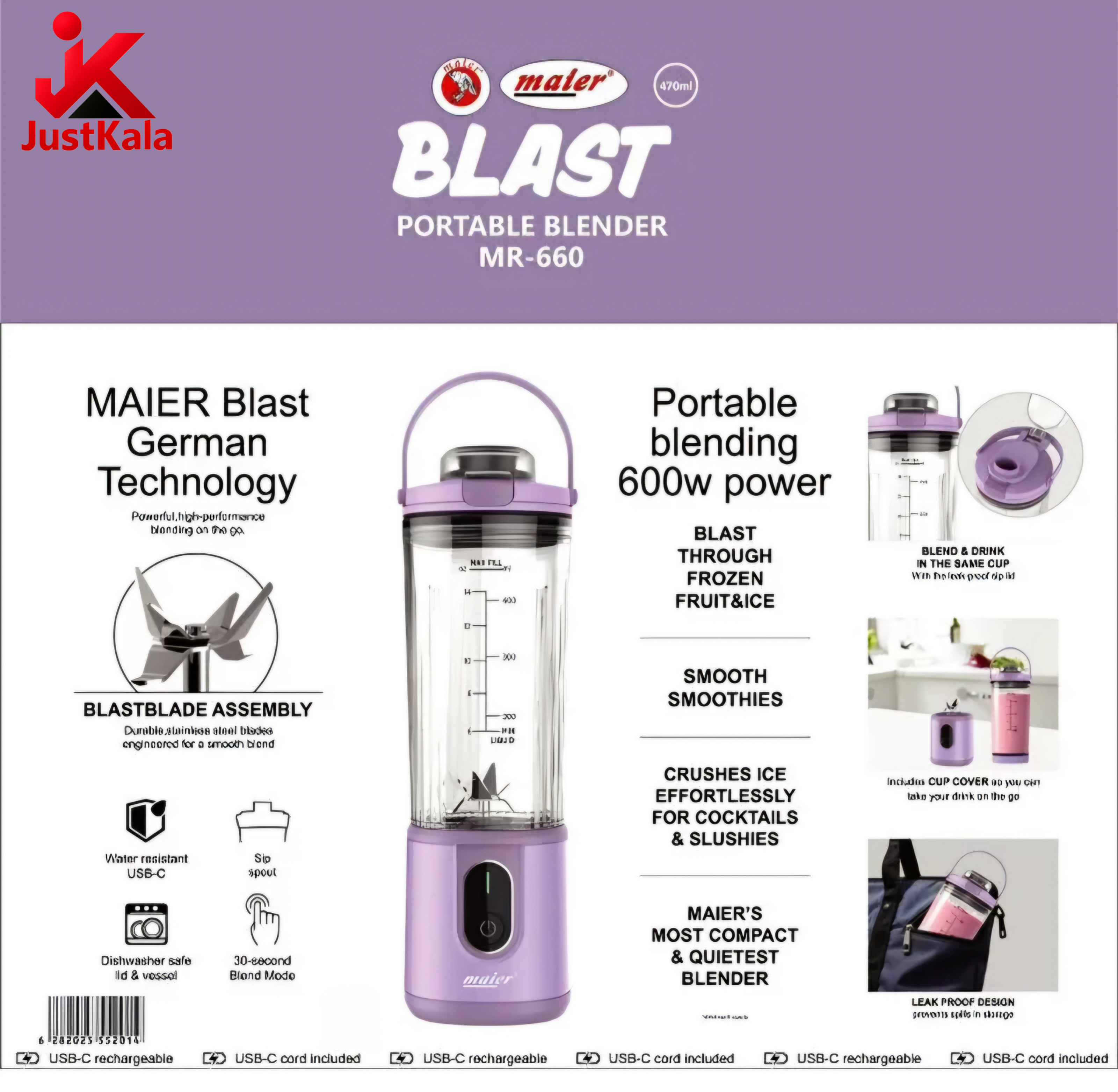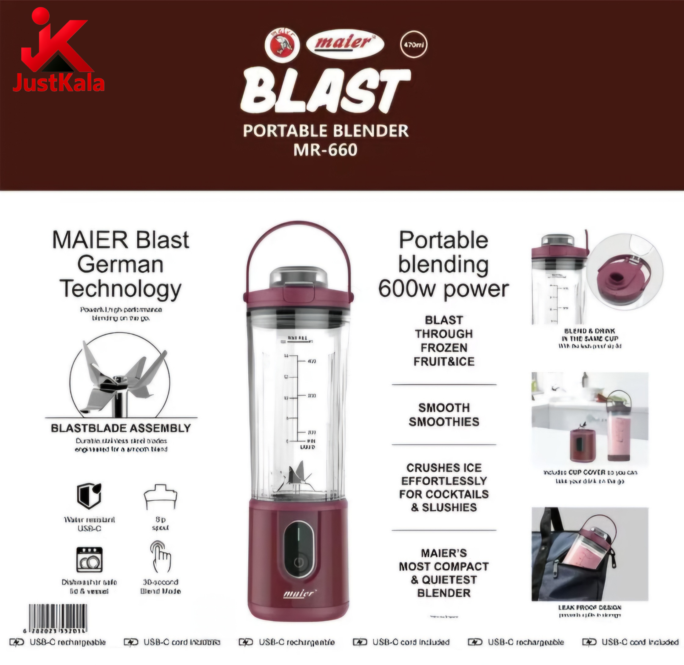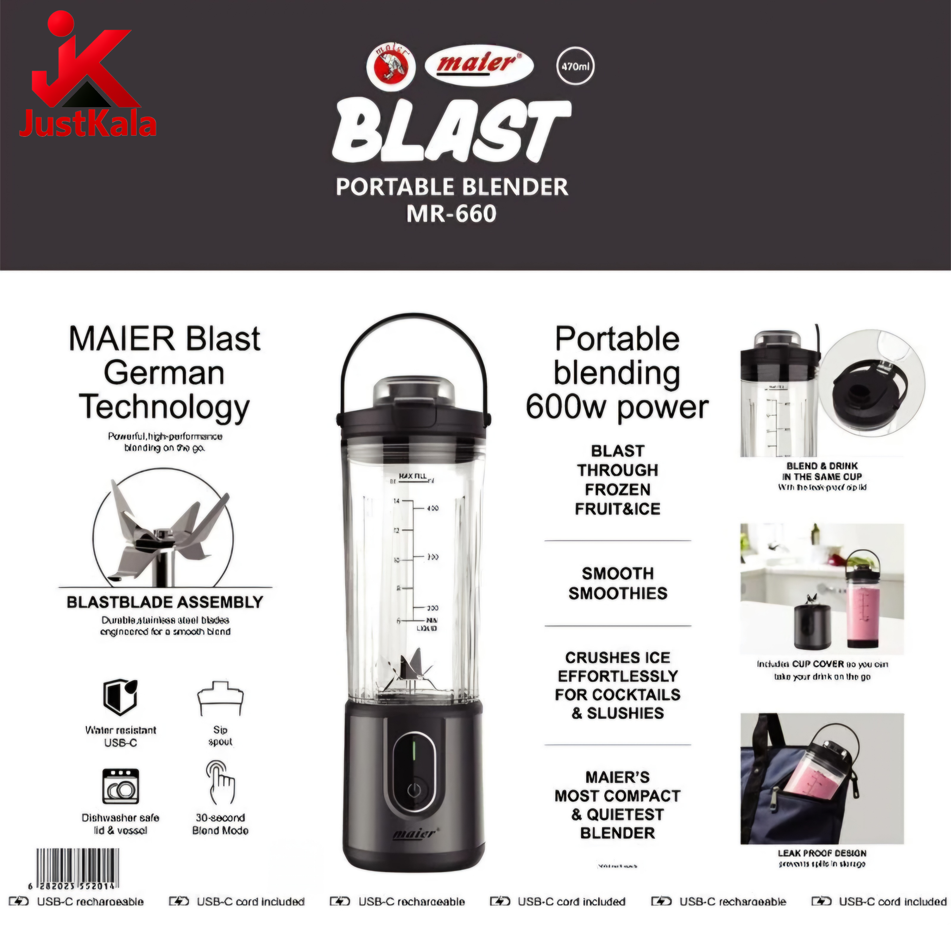 - توان بالا: مجهز به موتور 600 وات که قدرت کافی برای مخلوط کردن انواع میوهها، پودرهای پروتئینی و یخ خرد شده را دارد.