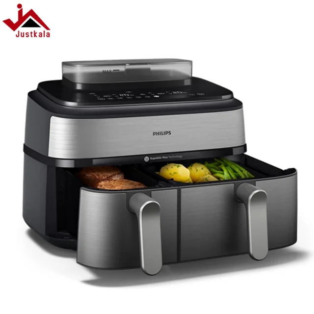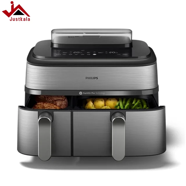 با استفاده از دو محفظه جداگانه، میتوان همزمان دو غذای متفاوت با زمان و دمای مختلف تهیه کرد. این ویژگی برای وعدههای غذایی متنوع بسیار مفید است.