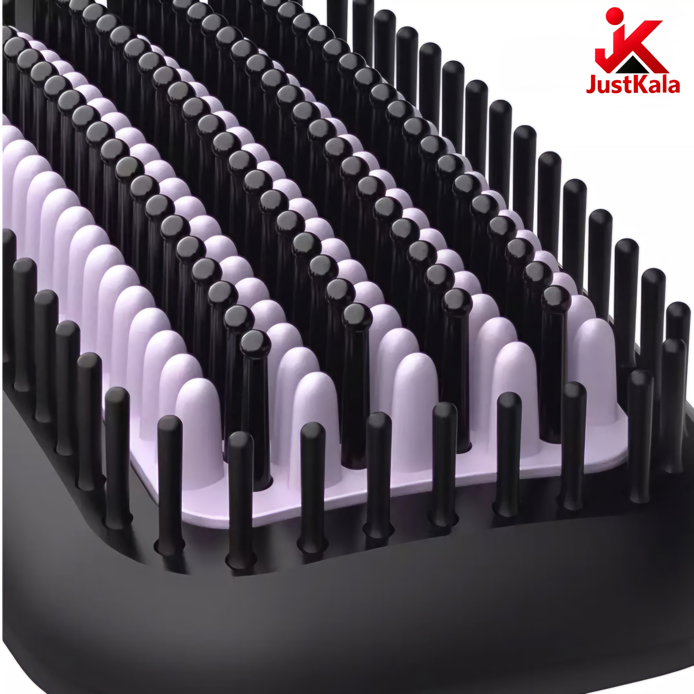 - طراحی برس: پد بزرگ و تخت (پدل) با ۲۴۷ دندانه و ۱۱۱ دندانه حرارتی برای پوشش بیشتر مو در هر بار کشیدن