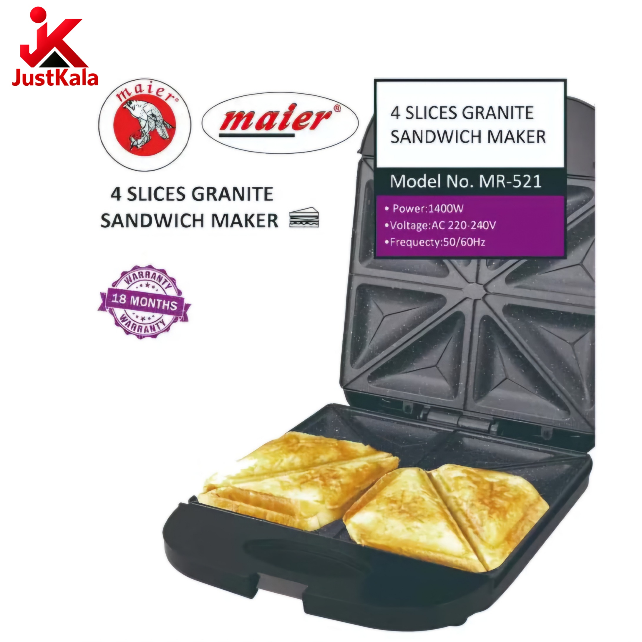 - تعداد خانهها: ۴ خانه (۸ مثلث) – مناسب برای تهیه چند ساندویچ همزمان